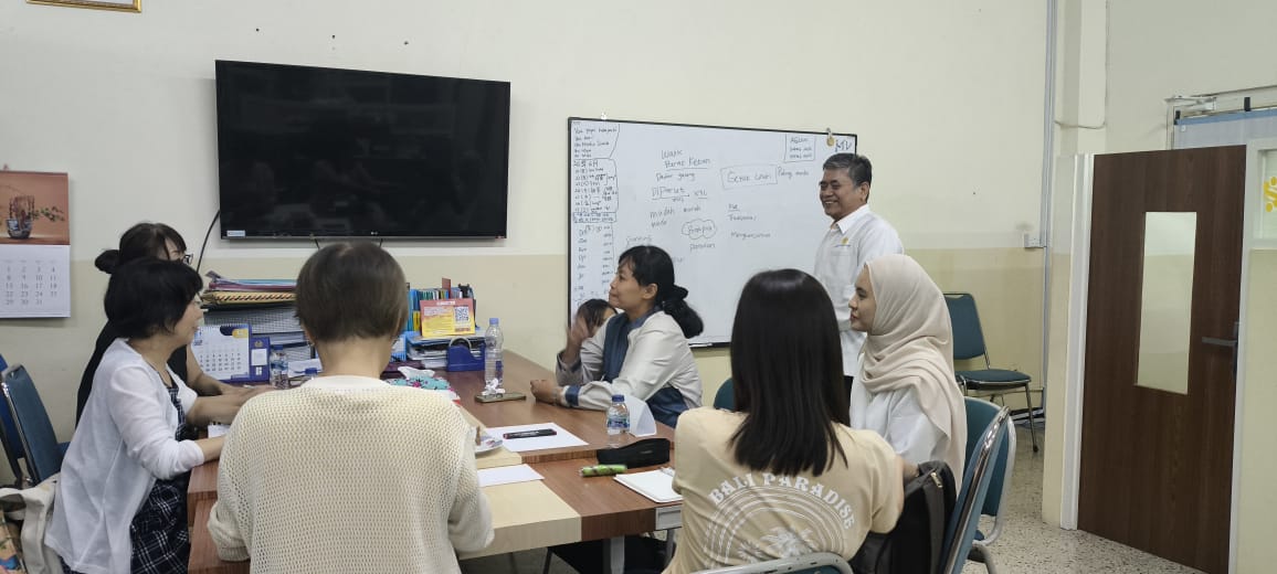 Lima orang wanita asal Jepang yang tinggal di Surabaya tengah mengikuti kelas Bahasa Indonesia di Program Studi S1 Pendidikan